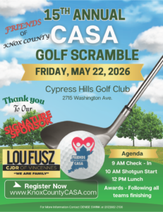 Join us for our 15th Annual Knox County CASA Golf Scramble! Hosted at Cypress Hills Golf Club located at 2715 Washington Avenue in Vincennes, Indiana. To guarantee your business is represented on our marketing materials for the event, please register by Friday, May 8.